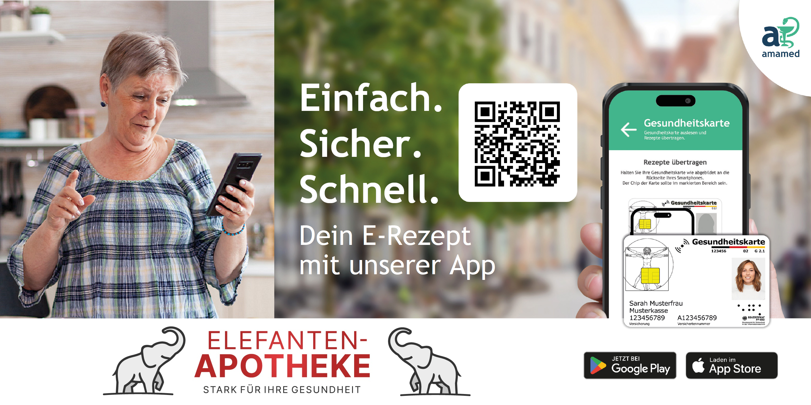 Sie möchten Medikamente vorbestellen, Ihre (E-)Rezepte einlösen oder mit uns chatten? Kein Problem! Laden Sie sich unsere bewärte AMAMED-App herunter und los geht’s!